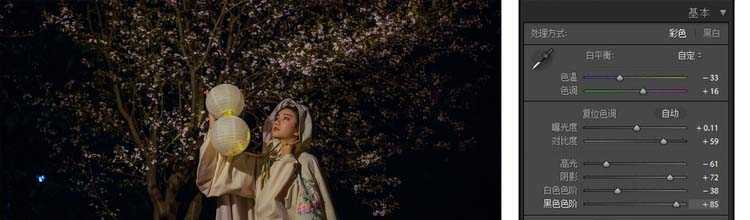 ①和②是为了增加灯笼的亮度,参数主要是加色温和加曝光。