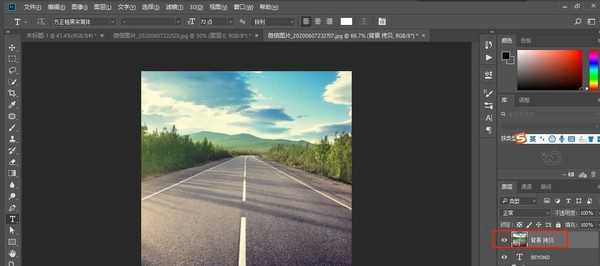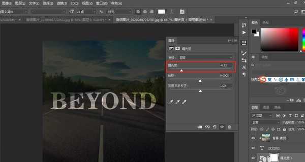 4.点击背景图层,添加曝光度。降低曝光度,让文字显示出来。