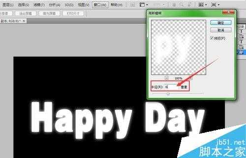 4、把副本进行模糊处理:上方菜单栏中的滤镜→模糊→高斯模糊,像素6,然后就得到一个模糊得文字